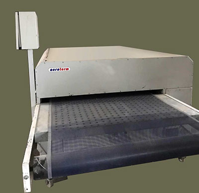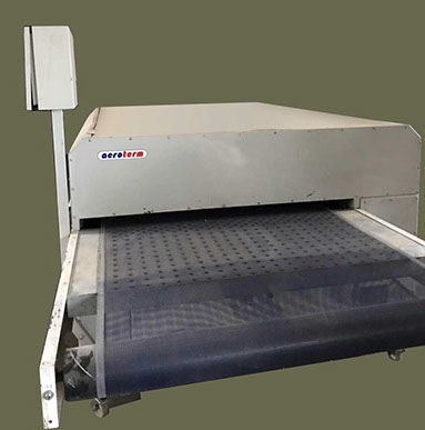 Teplovzdušný tunel. Typ: ULTRATERM //HAC. Sériové číslo: HAC1100/5500frm 04 -117. Šírka pásu 1100 mm. Dĺžka pásu 5000 mm. Dĺžka sušiacej sekcie 2500 mm. Dĺžka chladiacej sekcie 900 mm. Stroj je v dobrej kondícii.