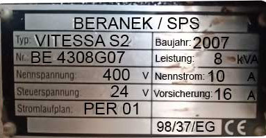 Minimálna dĺžka etikety: 10 mm. Maximálna dĺžka etikety: 800 mm. Max. rýchlosť etiketovania: 40 m/min. Rok výroby 2011. Šírka dopravníkového pásu: 235 mm. Dĺžka dopravníkového pásu: 3120 mm. Stroj je v dobrej kondícii.